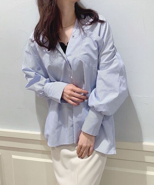きっちりし過ぎずラフに使いまわせるシャツは1枚ほしいアイテム☆ カジュアル過ぎないさらりと軽やかで上品な生地と、パールボタンがpoint! ビックシルエットで、こなれ感のあるルーズな着こなしが演出できます♪