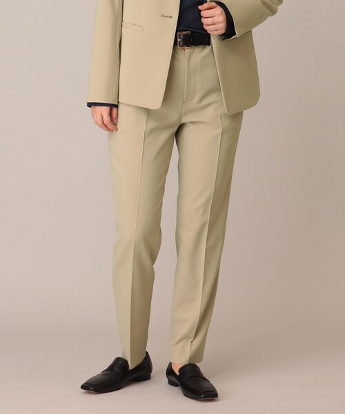 【デザイン】 センタープレスを施したすっきりとしたシルエットのテーパードパンツ。 シンプルなデザインなので様々なトップスに合わせやすいアイテム。 フロントはすっきりと、後ろゴム仕様なので穿き心地も快適です。 ※ポケット数:横×2、後ろ(ダミー)×2 【生地感】 程よい光沢のあるさらっとした生地感で穿き心地の良い素材です。 ※裏地あり 【着こなしポイント】 同素材のボトムと合わせてスーチングを楽しむコーディネートがおすすめです。 ※2021秋冬商品の一部より「レギュラーサイズ/トール&ラージサイズ」の商品番号と価格が統一となりました。 こちらの商品は主に春に着用いただける商品です。 モデル情報:身長163cm着用サイズ:02(M) 店舗へのお問い合わせ商品番号:153-64220 ●製品寸法: 00(SS):W67cm H88cm 股下63cm 前股上24cm 渡り幅28cm 裾幅14cm 01(S):W70cm H91cm 股下68cm 前股上25cm 渡り幅29cm 裾幅15cm 02(M):W74cm H95cm 股下68cm 前股上25cm 渡り幅30cm 裾幅16cm 03(L):W77cm H98cm 股下69cm 前股上26cm 渡り幅31cm 裾幅16cm 04(LL/トール):W80cm H101cm 股下69cm 前股上26cm 渡り幅32cm 裾幅17cm 42(3L):W84cm H105cm 股下68cm 前股上27cm 渡り幅34cm 裾幅19cm 44(4L):W88cm H109cm 股下68cm 前股上27cm 渡り幅35cm 裾幅19cm 48(6L):W96cm H117cm 股下68cm 前股上29cm 渡り幅38cm 裾幅20cm 備考: