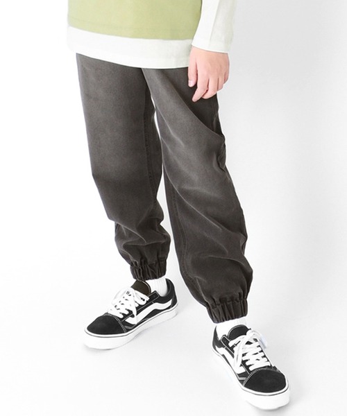 どんな動きにもフィットしてくれる、人気のスーパーストレッチデニム生地を使用したジョガーパンツです。伸縮性抜群の生地は、活発な男の子にとってもオススメ♪程よい厚みの9.5ozデニムに色落ち加工を施し、ビンテージ感のあるこなれた雰囲気に◎デニムらしい濃ブルー、爽やかな薄ブルー、クールなグレーの3色展開。ゆったりとしたサイズ感のテーパードシルエットはラフに着用いただけ、ウエストゴムでストレスフリーな穿き心地。裾ゴム仕様で足元はスッキリとした印象に仕上げました。オーバーサイズなトップスやアウターと合わせた、ルーズなスタイルがオススメ♪トレンド感をおさえながら、幅広いスタイルをお楽しみいただけます。【ポケット】フロントポケット×2、バックポケット×2【モデル】身長146.8cm、体重32.6kg 着用サイズ:150cm(DEブルー)身長157cm、体重40.8kg、着用サイズ:160cm(ブルー)【ご注意点】■素材の特性上、長時間の摩擦や揉み作用で毛玉が出来やすいので注意して下さい。目立つ毛玉はハサミや毛玉取り器で取り除いて下さい。■着用の際、後ポケットについているタグはお取りください。その際、生地を切らないようにご注意ください。■この製品は非常に色落ち、色移りしますのでご着用の際は下記の点に十分ご注意ください。・着用と洗濯を繰り返すことで色落ちが進み、使い込んだ風合いになります。・白・淡色系衣料品と合わせて着用されると摩擦によって他の衣料品に色移りします。・雨の日、汗等濡れた状態は、さらに他の衣料品等への色落ち色移りがしやすくなります。・保管の際は、色移りを防ぐ為、白・淡色の衣料品と重ねないでください。・日光(または照明)を長時間受けると黄変の恐れがありますので着用・保管の際はご注意ください。