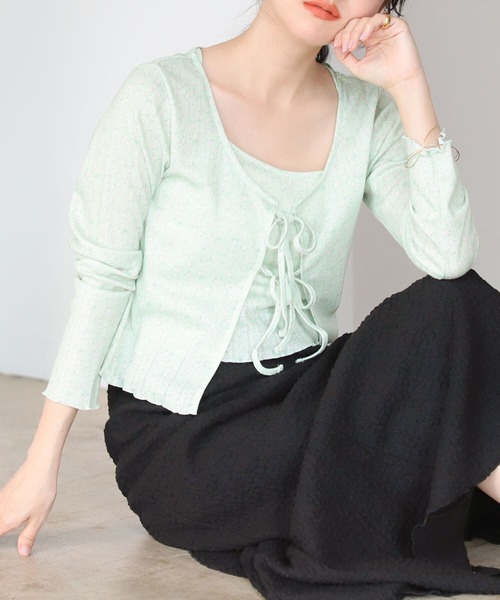 柔らかな肌触り キャミソールとカーディガンのお得なセットアイテム。 さらりと通気性の良いコットン素材は、伸縮性もあり肌になじみます。 BeAMS DOT<ビームスドット>オリジナルの花柄を使用し、シーズンムード高まる春らしい1枚に仕上がりました。 アンサンブルとしてはもちろん、別々で使えるので1枚あると重宝するアイテムです。 ■WHITE、LT.GREEN Model:H:160(cm) B:75 W:59 H:85 Size:ONE SIZE ********************** ケア方法:洗濯機可 (※詳細は商品についている洗濯表示タグをご覧ください。) 生地の厚さ:薄手 透け感:なし 伸縮性:あり 光沢感:なし 裏地:なし ********************** ※画像の商品はサンプルのため、実際の商品と仕様が異なる場合がございます。 ※光の当たり具合やパソコンなどの閲覧環境によって実際の色味と異なって見える場合がございます。予めご了承ください。 ※商品の色味は商品単体で撮影した画像をご参照ください。 ◆BeAMS DOT(ビームスドット)◆ 【お買い物をよりお楽しみいただくために】 ▼商品のお気に入り登録(ハートマークをクリック) 完売カラーの再入荷通知や、ラスト1点の通知、値下げの通知を受けることができます。 ▼ブランドのお気に入り登録 新商品や再入荷など、いち早くブランドのお得な情報を受け取ることができます。
