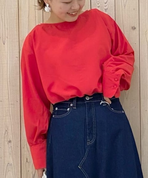 ーーー太めのカフスとバックボタンがビンテージな雰囲気を醸し出すドルマンブラウス。鮮やかで個性的なフラワーモチーフはヨーロッパのビンテージからオマージュしたオリジナルプリント。ピンクがかった明るいレッドも着こなしのポイントに!一枚で華やかな着こなしが楽しめる特別な一枚。ーーー同柄のボトムと合わせてワンピース風の着こなしや、デニムと合わせたカジュアルダウンの着こなしもおすすめです。