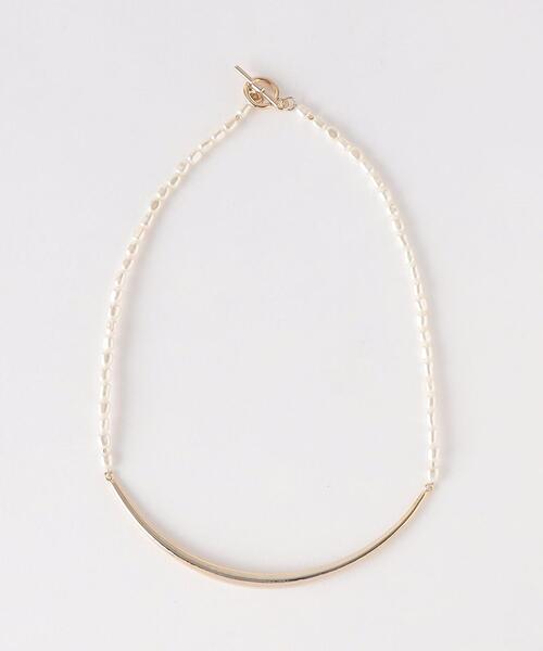 フェイクパール×メタルバーのコンビが新鮮なネックレス。 ■デザイン 小粒のフェイクパールと、メタリックな煌めきが美しいパーツを組み合わせ、チョーカー風に仕上げたネックレス。 マンテルタイプの留め具で着脱しやすいのも魅力。 ネックラインに沿うすっきりとした長さで、様々なデザインのウェアにマッチする一品です。 ■コーディネート どの角度から見ても華やかなデザインで、フォーマルシーンにはもちろん、カジュアルなスタイリングに女性らしさを添えたい時にもおすすめです。 【注意事項】 ※商品を使用前に、タグ等に記載されている「取り扱い上の注意書き」、「洗濯表示」を必ずご確認ください。 ※商品画像は、光の当たり具合やパソコンなどの閲覧環境により、実際の色味と異なって見える場合がございます。予めご了承ください。 ※商品の色味の目安は、商品単体の画像をご参照ください。 店舗へお問い合わせの際は、全国のBEAUTY & YOUTH各店舗まで下記の品名/品番をお申し付け下さい。 品名:BLN BY MINIPAL BAR S/NL 品番:1833-699-0053