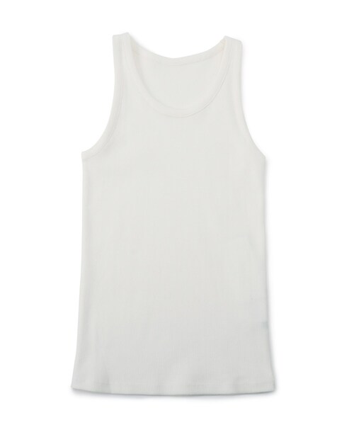【デザイン】 キレイ目な表面感のテレコを使用したアメリカンスリーブタンクトップです。 伸縮性がありながらもしっかりとしているので体のラインを拾いにくいうれしい素材です。 少し詰まった襟ぐりにアームホールをぐっと体の中心に寄せた健康的な見え方が、 一枚で着てもレイヤードしてもトレンド感が出る一枚に仕上がっています。 【生地感】 通常単糸で構成するテレコをあえて双糸(40/2)使いにすることにより、柔かさと膨らみを持たせました。 またコンパクト糸を使用しており見た目もきれいに仕上がっています。 ※オフホワイト(003)はやや透け感があるため、インナーの着用をおすすめします。 【着こなしのポイント】 シャツや襟ぐりのあいたニットなどとレイヤードしてトレンド感のあるスタイリングを楽しんでください。 暑い日には一枚で潔く着るのもおすすめです。 店舗へのお問い合わせ商品番号:153-14204 ●製品寸法: 02(M):着丈56cm B64cm 肩幅21cm 備考: