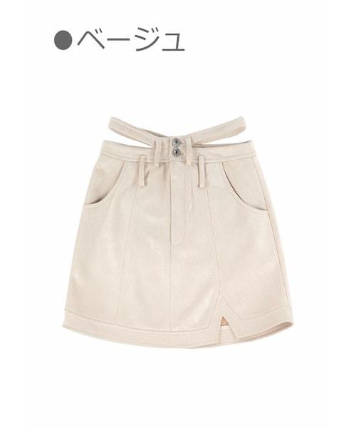ウエストの両サイドに大きく切り込みが 入ったアバンギャルドなスエードスカート 裾部分のスリットやウエストの切り込み具合 肌見せ度を計算し尽したあざとかわいいデザイン ショート丈のトップスと相性バツグン ハイウエスト&Aライン設計で 脚長・体型カバー効果も期待できるよ 「ベージュ」と「ピンク」の2色展開