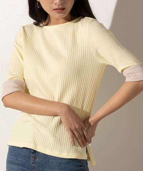 EUCLAIDの人気アイテム!袖口バイカラーのカットソープルオーバー 柔らかで身体につかず離れずのサイジングで、袖口を折り返すと隠れていた鮮やかカラーが顔を出します。 ■Design■ ・伸縮性のあるリブ素材を使用しており楽な着心地 ・襟元はボートネックで首元をすっきりとした印象に ・少し長めの袖丈を折り返すと配色のカラーがアクセントに ・前後差がありスリットの入った裾でタックイン&アウトしやすいデザイン ・手洗い可能 ■Color:ベージュ×袖口ネイビー、ネイビー×袖口ベージュ、ライトイエロー×袖口ベージュ ■商品特性 素材の厚さ:普通 素材の透け感:なし 素材の光沢:なし 素材の収縮性:あり ※モデル身長:164cm 着用サイズ:38 ■Staff Review■ ・スタッフA 身長:158㎝ 体型:普通 普段の着用サイズ/38 おうち時間にも着やすいソフトでやわらかな素材感です。袖口にはメタルボタンがついていてモード感があります。 ・スタッフE 身長:167㎝ 体型:普通 普段の着用サイズ/38 ジャケットインで合わせたり、サロペットやジャンパードレスのレイヤードアイテムとしても活躍します。 ■EUCLAID■ 身に纏うだけでバランスのいい凜とした女性に。 この服だからこそ、今日の心地がいい。 ※屋外での撮影画像は、光の当たり具合で色味が違って見える場合がございます。 商品の色はスタジオ撮影の画像をご参照ください。 ※お客様のお使いのスマホやPCのモニター環境などにより、色味が違って見える場合がございますので、予めご了承の上ご注文下さい。
