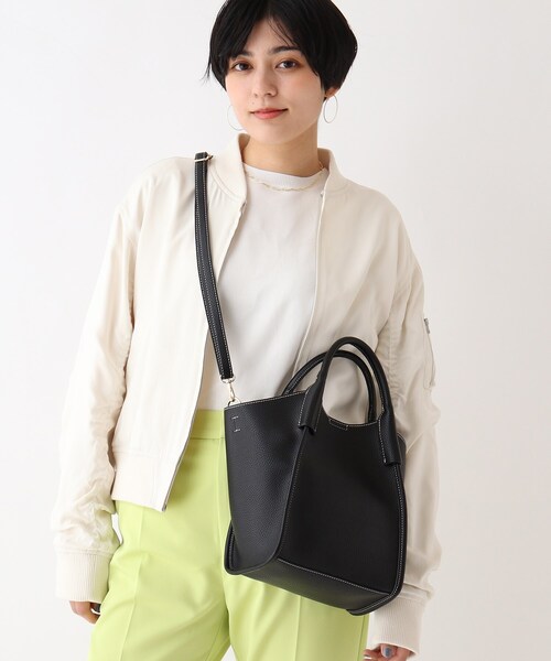 【My style is...掲載】配色ステッチの効いたミドルサイズのトートバッグ■デザインコロンとしたフォルムが可愛らしいミドルサイズのトートバッグ。コンパクトな見た目ながらしっかりと物は収納していただけます。本体カラーに合わせた配色ステッチが春らしさ満点です。内ポケットは本体同色のフェイクレザーをたたきつけでオープンポケット1か所。取り外し可能なロングショルダー付なので、斜め掛けでもお持ちいただけます。※ポケット数:内側×1■素材非常に軽量で、シボ感のあるシュリンクフェイクレザーを一枚革風に仕上げて使用しています。■コーディネイトキレイ目なスタイリングに合わせて通勤スタイルでも、休日のカジュアルスタイルにもはまるデイリー使いにピッタリなアイテムです。店舗へのお問い合わせ商品番号:C71-14029●製品寸法:00:高さ23cm 幅(上部)33cm 幅(下部)21cm マチ10cm 持ち手上がり10cm 付属ショルダー対応サイズ64~122cm備考:重量:約335g(サンプル重量)