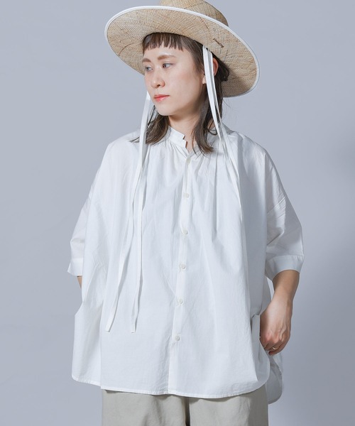 ふんわりAラインとギャザーが可愛い。 1枚で様になるギャザーブラウス。 folkaから2022 S/Sアイテムが登場。 こちらのブラウスは、繊維が長く細い綿糸を高密度で織り上げたタイプライターの生地を使用。 ふんわり柔らかな肌触りが特徴のブラウスです。 襟にはたっぷりのギャザーを入れ、背中にもギャザーディティールを施すなど 1枚でさらりと着ておしゃれに見えるブラウスに仕上げました。 柔らかなタイプライター生地が綺麗なギャザーを演出してくれるので 存在感のある1枚です。 ゆったりとしたシルエットながらボリュームが出過ぎないように工夫。 袖も長めの丈に設定し、気になる二の腕をカバーできる長さでお作りしました。 襟はスタンドカラーに仕上げることで顔まわりをすっきりと見せてくれます。 フロントに並ぶ貝ボタンも品の良さを添えるさりげないアクセントに。 上品なデザインなのでオンオフ問わずに使えるのもポイント。 オフィスカジュアルとしてもお使いいただけます。 シンプルなアイテムなのでボ合わせるボトムを選びません。 スカート、パンツ、夏のハーフパンツなど幅広いアイテムに合わせていただけます。 カラーは使いやすいベージュ、ホワイト、ブラック。 どの色も顔馴染みがよく、使いやすいカラーリングです。 この春夏の主役アイテムとして、ぜひ揃えておきたい1枚です。 (サイズ) 着丈/身幅/裄丈/裾幅/袖口幅 68/85/50.5/98/17 【オススメコーディネート】 春先には上にマウンテンパーカーやステンカラーコート、トレンチコートを合わせて。 スナップボタンカーデやフルジップパーカーを合わせても素敵です。 暖かくなってきたら1枚で。 ボトムにはパンツ、スカートどちらもOK。 定番のデニムパンツやスキニーデニム、チノパンを合わせてシンプルおしゃれに。 サーカスパンツやバルーンパンツなどのボリュームのあるパンツとの相性も抜群です。 リプパンツやフレアパンツを合わせればトレンドの着こなしが演出できます。 プリーツスカートやフレアスカート、ロングスカートを合わせれば女性らしい着こなしに。 柄スカートや柄パンツを合わせればこなれ感のあるコーデになります。 上にキャミワンピやオールインワン、サロペットなどを合わせてもキュートです。 足元はスニーカーやハイカット、スリッポンを合わせればカジュアルな着こなしが決まります。 スクエアトゥパンプスやバレエシューズ、パンプスで女性らしいコーデに。 夏はサンダルやスポサン、エスパドリーユなどで爽やかな着こなしもおすすめです。 カジュアルなアイテムなので、パールのネックレスやピアスなどで上品さをプラスするのもおすすめ。 フェイクレザーのバッグやミニバッグを合わせればカジュアルすぎない 大人女子な着こなしになります。 夏場は麻素材のベレーやカンカン帽、ペーパーハットなどとも相性抜群です。 シンプルなアイテムなのでお手持ちのアイテムにスッと馴染んでくれます。 ///folka(フォルカ)/// About… デニムの名産地、岡山。 そんな岡山で数々のデニムブランドの生産を手がけてきた工場によるブランド、folka。 良いものを長く愛用し、丁寧に暮らす。 そんな毎日の心遣いを大切にする大人の女性に向けたカジュアルブランドです。 使いやすく、着回しがきく。トレンドに左右されない。 頑張りすぎない、だけどどこかこなれ感のある日常着を提案します。