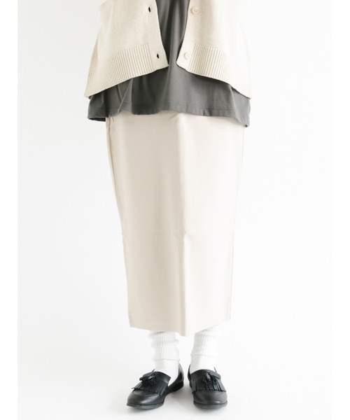 シルエットを綺麗に見せてくれる、肉厚感のあるポンチ素材のバックスリットスカートです。 Iラインですっきり着用出来るタイトなデザインが魅力的。バックスリット入りでさりげないヌケ感があり、足さばきもスムーズです。 シンプルな無地タイプで着回しやすい、デイリーユースに活躍してくれるアイテム。