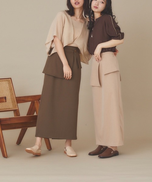 取り外しペプラムスカート ウエストのデザイン部分が取り外し可能なストレートスカートウエスト後ろ部分がゴムタイプなのでインしたスタイリングがしやすい仕様です。着丈が長く落ち着いた印象で取り入れていただけます。 シンプルなロングタイトスカートとしてもご着用可能です。 落ち着いた印象のブラウン・やわらかな雰囲気のベージュ・華やかな差し色のテラコッタの3色展開。 後のスリットから歩く度に脚が見えスッキリした印象を与えます。 きれいめにブラウスや、カジュアルにカットソーと合わせたり、 様々なスタイリングに取り入れていただけます◎ 淡色コーデ・淡色女子さんにもおすすめです ※入荷時期により多少色が異なる場合がございます。 予めご了承の程よろしくお願い致します。 model:H155(ベージュ) model:H162(ブラウン・テラコッタ) ≪ブランドコンセプト≫ イマドキアイテムを自分らしく ナチュラルに着こなしたい。 新しい自分になりたいけど いまの自分も大切にしたい。 moi tyttoは ちょっと新しくて ちょっと懐かしい いつも可愛いって思われたい 新しい自分に出会うためのブランド 『こんにちは女の子』 director たかあしあかり *商品のお気に入り登録* 完売カラーの再入荷通知や、ラスト1点、セールの通知をお知らせ致します。 *ブランドのお気に入り登録* 新商品や再入荷など、いち早くブランドの情報を受け取ることができます。