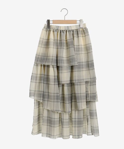 スタイリッシュなアシメデザインと、ふんわりとした立体感のあるティアード仕様はフェミニンな1枚です☆ 裏地はやや光沢があり上品な仕上がりで、ウエストはバックがゴムになっており程よいフィット感で着用できるのも嬉しいPoint◎ オーバーサイズニットのレイヤードや、インスタイルなど様々なコーデができるアイテムです♪