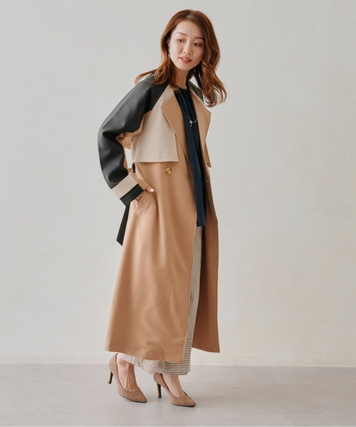 【バイカラートレンチ・スプリングアウター】 着るだけで雰囲気抜群のバイカラートレンチコート ■point ・落ち着いた配色で大人スタイルにピッタリです。 ・バイカラーで差が付くトレンチコート。 ・春の着回しにピッタリなアイテム。 ■coordinate ベーシックな丈感なので、パンツにもスカートにも合わせやすいです。 ワンピースの上に羽織ってバランスを取るのもオススメ! -------------------------------------------------- 透け感:なし 裏地:なし 伸縮性:なし 生地の厚さ:普通 ポケット:あり 洗濯方法:手洗い可 -------------------------------------------------- ※商品画像は着調イメージです。 光や角度により、実物と色味が異なる場合がございます。また表示のサイズ感も実物とは若干異なる場合もございますので、ご了承ください。 ※着用、お取り扱いの際は、商品についている品質表示とアテンションタグを必ずご確認ください。 -------------------------------------------------- ♡をクリックでお得な譲歩をお知らせいたします。 <商品お気に入り登録> お気に入りアイテムのお値下げ・再入荷・在庫ラスト1点など通知を受けることができます。 <ブランドお気に入り登録> Chez toiの新商品・再入荷・SALE・クーポン配布などお得な情報を受けることができます。 -------------------------------------------------- リラックススタイル/ストレスフリー/オンオフ/ベーシック/デイリー/袖リブ/大人カジュアル/ママコーデ/ お出かけスタイル/細見え/抜け感/キレイめ/トレンチコート/トレンチ