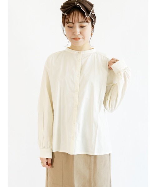 すっきりとしたバンドカラーで上品な印象に仕上げたブラウス。 コットン100%素材のナチュラルな風合いと、ソフトで優しい肌触りが魅力的なポイント。 ふんわり柔らかなシルエットも、愛らしい印象を演出してくれます。 シンプルに着るのはもちろん、レイヤードコーデのインに合わせたりと、幅広い着回しが楽しめる1着。