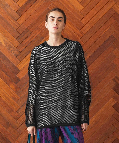 程よい透け感が印象的なメッシュ素材のプルオーバー。インナーとのレイヤードでインパクトのあるスタイリングに。men H186 B88 W73 着用サイズ:2women H177 B80 W59 着用サイズ:2