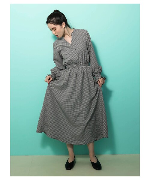 顔周りをすっきり見せてくれるスキッパーネックデザインのワンピース。 ウエストをきゅっと引き締めるシャーリングもメリハリ感をプラス。ふっくらとしたボリューム袖やフレアシルエットもフェミニンな印象です。 小柄なチェックパターンでトラッドな雰囲気を演出し、カジュアルにもキレイめにもスタイリングが楽しめるアイテムです。 透け感[無し] 裏地[一部有り] 伸縮性[無し] 光沢感[無し] 生地の厚さ[薄手] 付属品[無し] ポケット[無し]