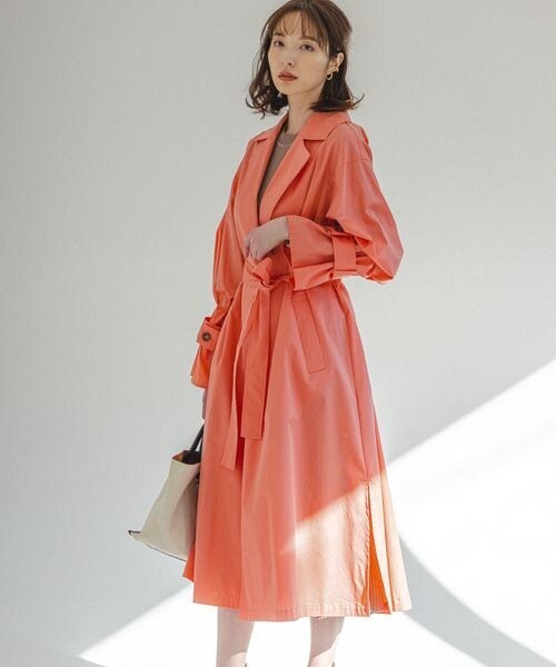 細部まで拘り抜いたデティール使いが魅力的なトレンチコート。 後ろのタック&ギャザーのボリューム感がポイントな一枚です。 とても軽い素材で裾にはスリットが入っているため、シルエットは重くならず程よくカジュアルな着こなしもできるのでONOFF使いやすいです。 共布のベルトでウエストマークしきゅっと結んでワンピースのような雰囲気でもお召いただけます。 【素材】 柔らかく薄手、シャリみのある素材 透け感無し ストレッチ無し 裏地無し