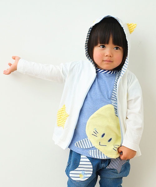 アイキャッチなねこモチーフをフードにデザインしたパーカです。 フードを折りたたんでボタンを留めれば、ボーダー柄のヘチマ衿になるおしゃれな仕様。星型のポケットもアクセントになり、一枚で着こなしに可愛らしい雰囲気を演出してくれる優れものです。袖にはロールアップに便利なタブを備えているので、腕まくりをしても安定感が続きます。【透け感】やや透ける【生地の厚さ】普通【伸縮性】あり【裏地】なし【ポケット】あり