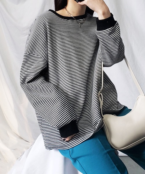 細かなピッチが目を惹く、 ゆるシルエットの配色リンガーボーダートップス。 ■ Point ・リンガーTシャツ風のデザインが可愛い配色ボーダーカットソー。 ・だぼっと大きなサイジングと肩を落としたドロップショルダーがポイント。 ・しっかりコットン生地にポリウレタンを配合した着心地の良い素材感。 ・ベーシックながらもオーバーサイズでボリューム感を出すことでコーデにアクセントをプラス。 ・細ボーダーが大人っぽくいろんなスタイルにマッチします。 ■ Fabric ・度詰めコットン天竺にポリウレタンを配合し伸縮性に富んだボーダーカットソー生地。 ・Tシャツより厚手でスウェットやトレーナーより軽い季節の変わり目にも重宝する素材感♪ ■ Coordinate ・デニムはもちろん、カラーパンツに合わせてオシャレ感がグッとアップ。 ・スウェットジョガーパンツでメンズライクなカジュアルストリートなコーデや、レザースカートやマーメイドスカートを合わせたフェミニンカジュアルコーデにも。 ・きれいめスラックスを合わせて品よくまとめたり、ショートパンツを合わせてゆるゆるカジュアルスタイルに♡ ・韓国ファッションスタイルがお好きな方にもおすすめ♡ ■ Color ブラック(黒)、ブルーの2色展開。 ■COORDINATE ITEM ブラック:HR-0606(店舗) ブルー:N01-21-0024(店舗) ☝上記番号で検索して頂くと商品が表示されます☝ 【生地感】 -------------------------- 裏地:なし 透け感:なし 生地の伸び:あり 光沢:なし -------------------------- 【me+em select (ミームセレクト) ZOZOTOWN お買い物ガイド】 ▼商品をお気に入り登録▼ 完売商品の再入荷やラスト1点の通知、セール開始時にお知らせ! ▼"me+em select (ミームセレクト) "をお気に入りブランドに登録▼ 新商品や再入荷など、ブランド最新情報をいち早くお知らせ! 是非、ご活用いただきお買い物をお楽しみください◎ ■他のキャンペーンにより、期間中に価格が変動する場合があります。 ■セールは予告なく終了させていただく場合もあります。 ■ご覧のモニター環境や撮影環境により実際の商品と多少色味が異なって見える場合がございます。 ご理解の程よろしくお願いいたします。