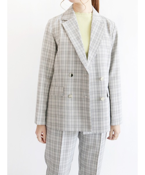 ダブルブレストがマニッシュな印象のテーラードジャケット。 今年らしいオーバーサイズ感が、羽織るだけでこなれスタイルに◎。インナーやボトムスを変えるだけで印象が変わるので、様々なスタイリングに活躍してくれます。チェック柄の展開も要チェック!