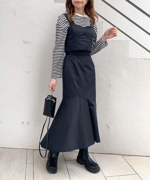 マルチウェイで着まわし抜群のセットアップジャンスカ ■デザイン ・ビスチェとマーメイドスカートがセットのアイテム。 ・スカートは裾のフレアがアシメントリーでお洒落見えするデザイン。 ・後ろ下がりなので歩くたびに女性らしく見せてくれます。 ・インナー次第でカジュアルにもガーリーにも着回せる優秀アイテムです。 ・ビスチェは前ボタン&後ろがゴムできれいに着れ、着脱もしやすです。 ■カラー ・アイボリー、ブラック、デニムの3色展開。 ■スタイリング ・ブラウスをレイヤードすればオリーブらしいガーリースタイルに。 ・カジュアルにあわせるならボーダーのトップスで合わせて。 ・トレンドのシアーインナーやシャツのレイヤードも。 ・足元は厚底のサンダルやスニーカーで合わせるとさらにスタイルアップします。 ・アウターは大人見えならトレンチコート、カジュアルならマウンテンパーカーがおすすめ◎ ■POINT 春コーデ、春服、ワンピース、ワンピ、ジャンスカ、ジャンパースカート、ビスチェ、スカート、ロングスカート、マーメイドスカート ガーリー、韓国コーデ、大学生、通学コーデ、マルチウェイ、レイヤードコーデ、重ね着、着まわし、着回し ----------------------------- 裏地:あり 光沢感:なし 透け感:なし 伸縮性:なし ----------------------------- model:166cm 【デニム】 デニム製品の特性上、着用や洗濯によって「色落ち」「色移り」が生じます。 デニム製品の特性をご承知の上、色合いの変化をお楽しみください。 ・ご着用中の摩擦等により移染します。白・淡色系の衣服、ハンドバッグ、靴、シート等は特にご注意ください。 ・デニム製品が雨水や汗で濡れると、より色移りしやすくなります。 ・洗濯により洗液がにごり移染しますので、他のものと一緒にしないで単独でお洗いください。 ・洗濯後濡れた状態で放置されますと色移りしやすくなります。 ・色移りしやすいため、下着やインナーには暗いカラーのものを着用いただくことをお勧めいたします。 ※着用、お取り扱いの際は、商品についている品質表示とアテンションタグを必ずご確認下さい。 ※ご覧のモニター環境や撮影環境により実際の商品と多少色味が異なって見える場合がございます。 ご理解の程よろしくお願いいたします。 ■お気に入り登録のおすすめ 【気になるアイテムを登録】 ハートをクリックしてお気に入りに登録すると 完売カラーの再入荷やラスト1点の通知、セールの通知を受けとることができます。 【ブランドを登録】 新商品や再入荷、セール通知など、いち早くブランドの情報を受けとることができます。