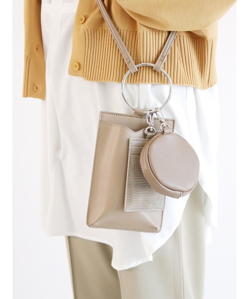 スマホケース、カードケース、丸ケースが一つになったマルチケースリングストラップ。カードケースと丸ケースは取り外しができるので単品使いも可能です。フェイクレザー仕立てで上品さもプラス。手持ちや肩掛けができる長めのショルダーベルトもポイントに◎ミニマルなお出かけが叶うアイテムです。