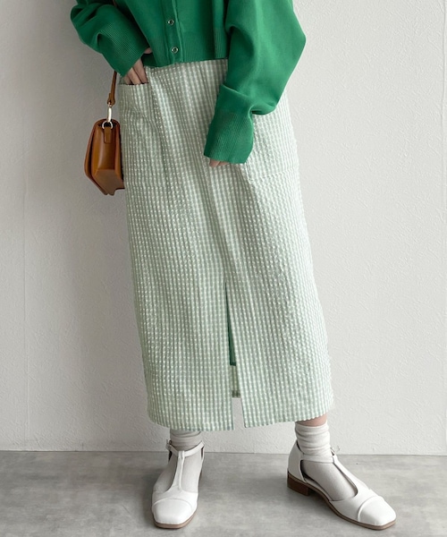 大人ガーリーなギンガムスカート春に着たくなるとっておきのギンガムチェック柄スカートが登場です。すとんと落ちるペンシル型のシルエットは、可愛い雰囲気のギンガムチェックもどこか大人っぽく着こなせます。ウエストゴムで締め付け感がなく、リラックスして履いて頂けて裏地付きなのもうれしいポイント。長すぎない丈感は、ソックス合わせもしやすくバランス◎。スタイリング今年の流行りは少し大人っぽいトップスと合わせた、甘すぎずバランスよく仕上げるスタイル。コンパクトなカットソーやTシャツと合わせた韓国っぽスタイルもオススメです。足元はスニーカー合わせでカジュアルダウンするのが◎。※商品の色はimageの着用写真ではなく、商品写真をご参照ください。--------------------裏地:あり透け感:なし厚さ:普通伸縮性:ややあり--------------------