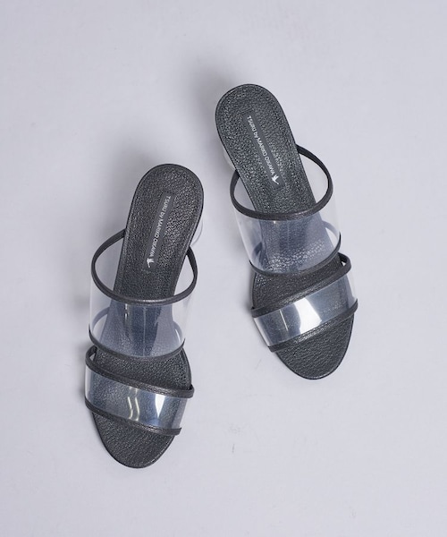 クリアヒールとこだわりの配色がオススメのミュール-Detail-合わせやすいシンプルなデザインでコーデの邪魔をせずにポイントを置いてくれる存在。TSURUらしいグラデーションの配色で仕上げたパイピングがアクセントに。太ヒールなので安定感のある履き心地です。-Fabric-ベージュはスウェード、ブラックはレザー地になっています。