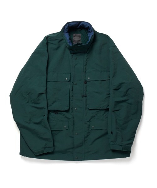 どこか懐かしいクラシックなグログラン組織のヨコ畝とマットなルックスが特徴。ふっくらとした肌触りが特徴のタスラン糸を使うことでコットンタッチを表現しました。清涼感のあるグログラン組織の特徴を活かし、一枚仕立てでデザインしたアウトドアジャケットです。胸部に大きく配したフラップポケットは、両サイドのジップにより、複数の物の出し入れが可能となり、ハンドウォーマーとしての機能も果たします。サイドまで覆うようにデザインしたポケットも特徴で、ルアーケースや、タックルボックス、ドリンクホルターとしての機能も果たします。ネックには収納可能なフードも収納されており、機能性抜群です。どこか1990年代を感じさせる配色もこのアイテムの特徴です。内側にはブランドを代表する様々なポケットワークを施し様々なフィールドに対応できるデザインに仕上げました。ミリタリーのディテールでもある前振りの袖がデザインアクセント、アクションプリーツを加え、袖口も調整出来るようにデザイン。釣りの際の可動域を広げ、袖口のもたつきも解消したデザインです ※サングラスホルダー、ピンオンリールホルダー付きDAIWA PIER 39「大自然」と「都会をシームレスに繋ぐ架け橋」という考えを提案するこのラインは、都市生活を満喫するためのデザインと、フィッシングを楽しむためのアイディアが共存するアパレルコレクション。 これまで培ってきたフィッシングシーンでの経験の中に見出した発想を、日常というフィールドの中でもサポート出来るこだわりが細部にまで表現されている。 釣りという趣向から生まれたリアルクローズが「DAIWA PIER39(ダイワ ピア39)」