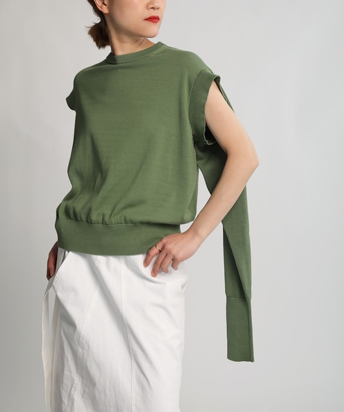 THOMAS MAGPIE (トーマスマグパイ) 福岡の人気バッグデザイナー『 intoxic.』の奥村展子氏がディレクションを務めるウェアブランド。THOMAS MAGPIEとはデザイナーが留学中に訪れたオーストラリアの道に付いていたマグパイストリートからとった名前。 カジュアルとエレガントが融合したユニーク溢れるデザインそしてロゴデザイン、 テキスタイルに拘ったファッションを提案しています。 デザイン性たっぷりなニット。 肩下部分にフレンチスリーブになる様な袖穴が付いており、 長袖としても、半袖としても両方で着る事が出来る一枚です。 また身頃は大きめ、袖は長め、着丈は短めになっており、 着る方の体型は選ばないのもポイント。 長めの袖がよりモード感を強くしています。 コットン素材ですがサラッとしており夏にも着用が可能。 真冬はインナーに薄手のニットを入れたりと、自分の個性で色んなアレンジが効きます。 ※ブランドサイズ:38 ※撮影場所や明るさにより 実際の商品と色味が若干異なる場合がございます。 ☆商品のお気に入り♡登録を押せば ”再入荷通知”や”残りわずか通知” 値下げのお知らせが届きます! お気に入りのブランド登録していただければ新商品入荷のお知らせも届きますので 是非登録してみて下さい。
