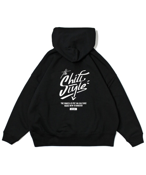 “Shift the style”をテーマに制作したオリジナルタグを配置したビックシルエットパーカー(裏起毛)です。背面にはストーリー感あるグラフィックロゴをプリントし、前後で楽しめるデザインになっています。カラーは定番のブラックと、落ち着きあるサンドベージュとスモーキーグリーン。どのカラーも様々なパンツと相性良く着ていただけるので、コーデの幅を広げてくれます。
