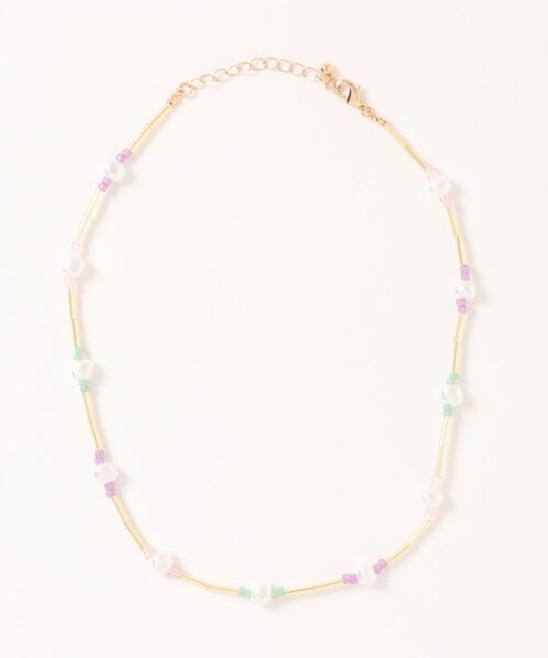 メタルの竹ビーズ×樹脂パールをMIXしたネックレス。華やかなパステルのカラービーズもスタイリングに愛らしい表情をプラスしてくれます。華奢なデザインでコーディネートにも取り入れやすく、シンプルに使っても、手持ちのネックレスと重ね付けでも楽しめるアイテムです。● Green Parks ●(グリーン パークス)20以上の人気ブランドを取り扱うアパレルセレクトショップ。ベーシックながらもさりげなくトレンドを取り入れたオリジナルブランドchocol raffine robeも展開。▼ 商品のお気に入り登録がおすすめです ▼商品ページ内のハートマークをクリック。完売時の再入荷や、最後の1点の通知、コーディネート画像がアップされたとき、お得なお値下げの際の通知を受ける事ができます。【お知らせ】ページでも通知が確認できます。