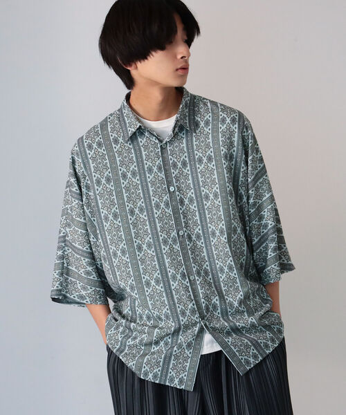 コーディネートに映えるシャツ!総柄の生地とボリュームのあるいシルエットが特徴的なニューアイテムがリリース。オリジナルテキスタイルを使用したこだわりの一着は、袖の付け根から袖先にむけて徐々に細くなっていくドルマンスリーブを採用。身頃から袖までのドレープが印象的です。シルエットと柄が映える、コーディネートの主役アイテムに仕上がりました!Model:180cm Size:LModel: 173cm Size: L※光の当たり具合やパソコンなどの閲覧環境によって実際の色味と異なって見える場合がございます。予めご了承ください。【お買い物をよりお楽しみいただくために】 ▼商品のお気に入り登録(ハートマークをクリック) 完売カラーの再入荷通知や、ラスト1点の通知、値下げの通知を受けることができます。 ▼ブランドのお気に入り登録 新商品や再入荷など、いち早くブランドのお得な情報を受け取ることができます。