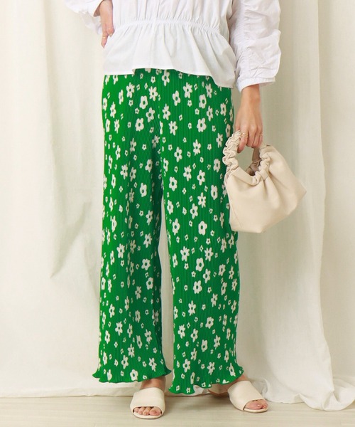 春にぴったり!キャッチ―な花柄が可愛いパンツ◎さり気ないプリーツデザインでスタイルアップも!■point・キャッチ―な花柄・プリーツデザイン・裾のメロウデザイン・ウエストゴム■detail1枚で春らしさ満点のプリーツパンツです。キャッチ―な花柄は着るだけで気分があがります!裾がメロウ仕様なっているので、歩くと表情がでて◎トレンドライクなグリーンはもちろん、大人可愛いが叶うモノトーンカラーもオススメ。■fabricシワになりにくく、ストレッチ性抜群の素材です。ウエストがゴムなので着心地もいいです。オフのみ透け感がある為、ベージュなど肌の色に近いインナーをおすすめします。……………………透け感:オフのみあり厚さ:薄い裏 地:なし光沢感:なし伸縮性:ありポケット:なし洗濯方法:手洗い……………………※ネットに入れてのお洗濯をお勧めいたします。※詳しいお手入れ方法は商品タグをご参照ください。■coordinateスウェットやパーカーとカジュアルに合わせたり、シアーシャツと合わせた抜け感のある着こなしもオススメです。ワンピースとのレイヤードで、花柄をポイント使いするのも◎《商品のお気に入り登録》・再入荷通知や、ラスト1点の通知、セール通知も受け取ることができます。《ブランドのお気に入り登録》・新商品や再入荷など、お得な情報を受け取ることができます。※屋外の光や照明の当たり具合、パソコンなどの閲覧環境によって実際の色味と異なって見える場合がございます。予めご了承ください。※他のキャンペーンにより、期間中に価格が変動する場合があります。