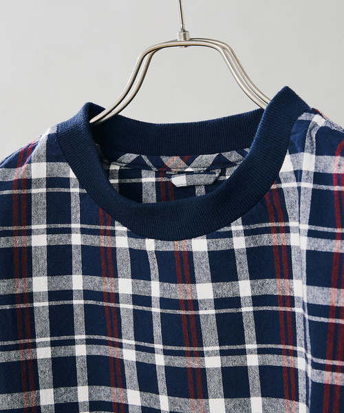 綿100%を使用したフランネルチェック生地を使用した布帛のTシャツ型です。 サイズ感はややオーバーサイズで、トレンド感もあり、着やすいサイズ感になっています。 ********************** 裏地:なし 伸縮性:なし 光沢感:なし 生地の厚さ:普通 ********************** 【スタッフ着用コメント】 《スタッフH》 身長:173cm/体重:62kg/体型:中肉中背/普段サイズ:M/着用サイズ:L サイズ感: ややゆったりとしたサイズ感です。 素材感:ベーシックな綿100%フランネル生地です。 着心地:柔らかくて肌触り良いです。 ********************** ※店頭・外での撮影画像は、光の当たり具合で色味が違って見える場合があります。 商品の色味は、スタジオ撮影の画像をご参照ください。 モデルサイズ:H177cm W64kg 着用サイズ:L 本体:洗濯機洗い(弱)、色あせ