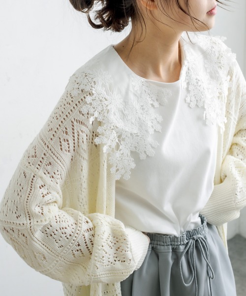 ピュアルセシン 2022 spring collection【Loose andc lassical】 ◇華やかなスタイリングに仕上がる、レース襟インナー◇ ●デザイン コーディネートの+1アイテムとしてお召しいただけるレース襟インナー。 メイン地とレースを同色にすることにより、甘さが抑えられ幅広いスタイリングに取り入れやすいデザインに仕上げました。 伸縮性のある生地はストレスフリーな着心地。 ノースリーブなので半袖から長袖まで、ロングシーズンお召しいただける1枚です。 ●カラー展開 定番のオフホワイト/ブラックの2色展開 ●素材 メイン地はコットン100%の柔らかな素材。 伸縮性があり、サラリとした肌あたりです。 ●スタイリング ラウンドネックやボートネックなど、ネックラインに余裕のあるトップスと重ねて、スタイリングの変化をお楽しみください。 レースをあしらうことでシンプルなトップスも華やかな印象に仕上げてくれます。 =============================== 透け感:オフホワイトのみややあり 裏地:なし 伸縮性:あり 光沢感:なし 生地の厚さ:普通 【スタッフコメント】 年齢:20代前半/身長:157cm/普段着用サイズ:Mサイズ サイズ感:身幅、肩回りなどしっかり余裕があるので、締め付け感なく着用が出来ました。 素材感:さらりとした軽やかな素材感です。伸縮性があり、なめらかな着心地です。 =============================== ※撮影場所やお使いのモニター環境により若干お色味が異なる場合がございます。特にロケの撮影では明るく見える傾向にございます。 ※予約商品はサンプルで撮影をしております。若干の仕様が変更になる場合がございますので予めご了承の上ご注文くださいますようお願いいたします 。