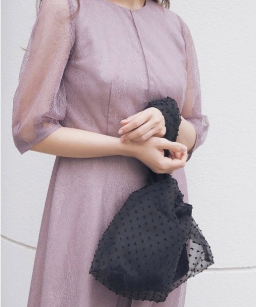 人気のチュールバッグにドットバージョンが登場。 サテンに張り感のあるチュールを重ねたハンドバッグです。 マチが付いており、コンパクトながらも収納力は◎ 土台のサテンも厚手のものを使用している為、安定感も抜群です。 フォーマルシーンのみならず、デイリーユースでもお使いいただけるデザインバッグです。 ◇詳細◇ 生地の厚み:普通 伸縮性:なし 透け感:なし 光沢感:なし 裏地:あり ポケット:なし ファスナー:なし