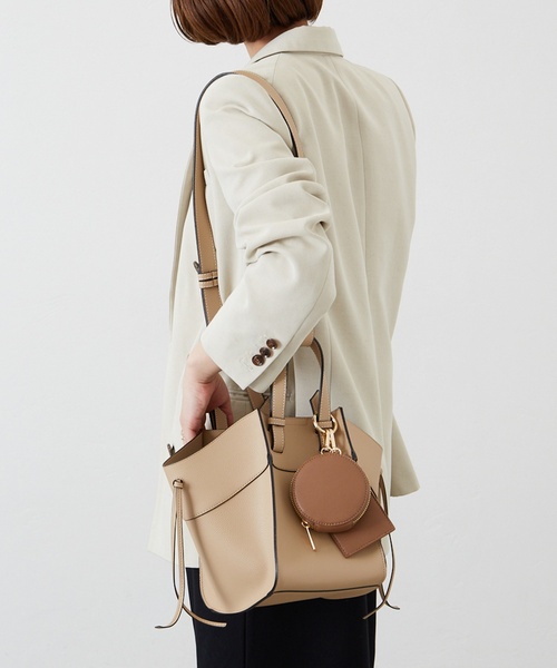 -LE TALON 2022SS- たっぷり収納できるのにすっきりした見た目が嬉しいトートバッグ。 しっかりマチがあり仕切りのないデザインなので、少しサイズのある物でも収納可能です。 付属でコインケースとカードケースのチャームも付いているので、シーンに応じてカスタムして頂けます。 ハンドルと肩掛けの2WAYで使えるのも嬉しいポイント。 さり気なく施されたトリミングのおかげで上品な印象になり、カジュアルになり過ぎないので様々なシーンで活躍します。