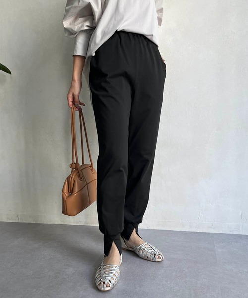 細見え効果抜群!抜け感たっぷりのジョガーパンツ商品ポイント・身長を選ばず穿けるパンツ・ウエストゴム、伸縮性のあるジャージー素材で穿き心地も楽◎・フロントのスリットが脚長効果抜群・イージーに見えすぎないきれいめ見えする生地感スタイリングポイント・シャツ、ブラウス合わせのきれいめコーデに・Tシャツ、スエットを合わせてカジュアルにも・トップスを選ばず着られる万能パンツ・足元はパンプスやサンダル合わせがおすすめ**********************透け感:なし裏地:なし伸縮性:あり光沢感:なし**********************▼洗濯方法液温は40℃を限度とし、洗濯機で非常に弱い洗濯ができる※撮影場所やお使いのモニター環境により若干お色味が異なる場合がございます。特にロケの撮影では明るく見える傾向にございます。※商品はサンプルで撮影をしております。若干の仕様が変更になる場合がございますので予めご了承の上ご注文くださいますようお願いいたします。▼商品のお気に入り登録完売カラーの再入荷通知や、ラスト1点の通知、セールの通知も受け取ることができます。▼ブランドのお気に入り登録新商品や再入荷など、いち早くブランドのお得な情報を受け取ることができます。
