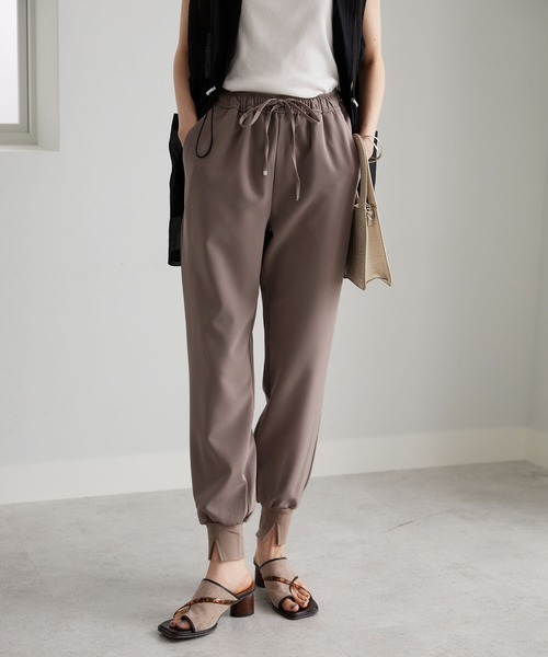 モードなトレンドスタイルにも、大人のリラックススタイルにも◎ ゆるっときれいに着こなすジョガーパンツ 〇楽ちんなのにきれい見えする大人のためのジョガーパンツ 〇裾スリットデザインですっきり美脚見せ 〇ストレッチ素材でストレスフリーなはき心地 ■デザイン きれいめにもカジュアルにもマッチする、大人のためのジョガーパンツ。 縦にも横にも伸びるストレッチ性のある布帛素材ではき心地抜群◎ ウエスト紐の先はシルバーチップデザインで、きれいめな印象をキープ。 カジュアルになりすぎず、様々なシーンで活躍します◎ 裾リブのセンタースリットが縦のラインを強調し、美脚見え! お出掛けにもワンマイルウェアにもおすすめな、優秀アイテムです。 ■素材 サラッとした肌ざわりできれい見えする布帛素材でロングシーズン活躍◎ 縦にも横にも伸びるストレッチ素材で、楽ちんなはき心地です。 …………………… 透け感:なし 厚さ:普通 伸縮性:あり(たてよこストレッチ) 裏地:なし …………………… ■コーディネート ラフなTシャツやスウェットとのコーディネートも、 きれい見えする素材を使用しているからカジュアルになりすぎず大人っぽく着こなせます。 足元はお出掛けにはローファーやヒールパンプスを、ワンマイルには厚底スニーカーを合わせると今っぽいスタイリングに◎ *股下69cm ● 裏地無 ● ポケット有 ● ウエスト総ゴム使い ● ウエスト紐入り ● たてよこストレッチ 洗濯:洗濯機使用可 -------------------------------------------------------------- ※サイズ寸法は実際の寸法と多少の誤差がある場合が ございます。 ※ご覧いただいているPC/WEB環境や撮影環境により、 多少色味が異なって見える場合がございます。 【お買い物をよりお楽しみいただく為に】 ▼商品のお気に入り登録をおすすめします♪ 『♡をクリック!』 完売カラーの再入荷やラスト1点の追加、 セールの際の通知を受ける事ができます。 ブランドのお気に入り登録もご一緒にお願い致します。 --------------------------------------------------------------