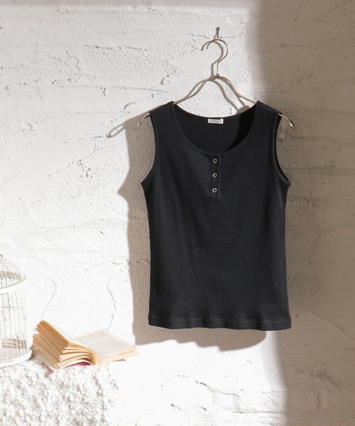 シャツやカーデのインナーに映えるリングドットボタンがアクセントの タンクトップ。 すっきりと開いた首元が デコルテラインをきれいに見せ、 女性らしい印象に。 伸縮性のあるテレコ素材で、 ややぴったりとしたシルエットながらも 伸縮性があり、快適な着心地。 抜き衿アイテムや カーディガン合わせにおすすめです。 品番:585-13-7423