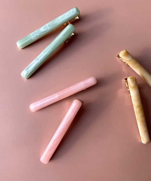 ◆淡い春カラーのマーブル模様が可愛いヘアクリップ◆ マーブル模様の淡いカラーが春らしい2本セットのバレッタです。 ヘアアレンジにも使いやすい小ぶりなサイズになっています。