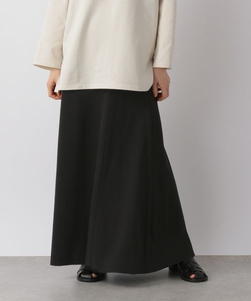 ◆素材 生地に凹凸のあるワッフル組織の素材で吸水性、吸湿性にも優れた素材です。 これからの春から夏にかけての季節にぴったりです。 ◆デザイン 体に程よくなじむためきれいなフレアーラインが出るカット素材のスカートです。 厚さのある素材で表面にも凹凸があるため体のラインを拾いすぎずない1枚。 ◆スタイリング 凹凸感が少ないワッフル素材なので、カジュアルな印象になりすぎずに着用していただけます。 カット素材のスカートなので、トップスはシャツやブラウスなどの軽めのトップス合わせがオススメです。