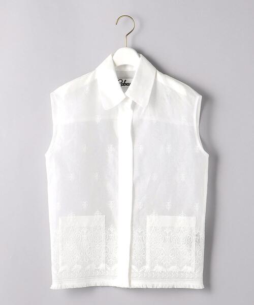 シアーなレース素材を用いたノースリーブ シャツ。 全面に施された刺しゅう、裾のフリンジ仕立てが素材の軽やかさを一層際立つ仕上がりに。 レギュラーカラーと比翼ボタンで、ノースリーブながらも気品のある佇まいです。 ワンピースの上に羽織ったり、ワイドボトムとあわせるとバランスよく着こなせます。 ============================ ケア方法:手洗い可・ドライクリーニング ============================ <Cabana(カバナ)> 吹上肖氏監修による、2018年秋冬デビューのブランド。 “Cabana(カバナ)”とはリゾートビーチのコテージなどを意味する言葉。 名前から連想される通り、開放的にタウンからリゾートまで、シーンを選ばないコレクションを展開します。 男前をキリッと女性が着こなすそこに溢れる女性らしさ。 男前ならぬ”女前スタイルを標榜するブランド”です。 【注意事項】 ※商品を使用前に、タグ等に記載されている「取り扱い上の注意書き」、「洗濯表示」を必ずご確認ください。 ※商品画像は、光の当たり具合やパソコンなどの閲覧環境により、実際の色味と異なって見える場合がございます。予めご了承ください。 ※商品の色味の目安は、商品単体の画像をご参照ください。 店舗へお問い合わせの際は、全国のUNITED ARROWS各店舗まで下記の品名/品番をお申し付け下さい。 品名:CABANA/16 SHER LACE PKT 品番:15785998514