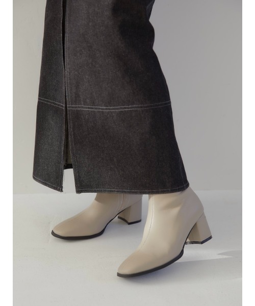 シンンプルなデザインはコーディネートに合いやすく、品の良いフォルムとニュアンスのあるベージュカラーが魅力のショートブーツ。太めヒールで安定感のある履き心地です。