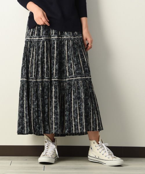 ナチュラルなフラワープリントが魅力ティアードギャザースカート上品な線画フラワープリント柄が人気のスカートです。ティアード切替をしているので裾に向かって自然に広がるシルエットがとてもきれいです。動きに合わせて揺れるナチュラルなフラワープリントが大人フェミニンな印象に演出してくれ、カジュアル過ぎない素材でスタイリングの幅も広がります。ウエストはゴム仕様になっていて締め付けのストレスも少なく、華やかさと動きやすさのある1枚です。シンプルにコンパクトなブラウスやカットソーをコーデすればオフィススタイルに◎もちろん、Tシャツやスエットでデイリーにも活躍するお勧めな1枚です。■取扱いご自宅でイージーケア(手洗い)ができます。INTERPLANET/actuel(インタープラネット/アクチュエル)■conceptいつだって私らしく、私自身のスタイルが決まる。。。時代や年齢に媚びない『らしさ』を纏って生きる女性へ。旬なベーシックと抜け感のあるカジュアルをMIX。そんな大人カジュアルコーデを提案します。■お気に入りの登録についてショップ・ブランドのお気に入り登録でクーポンやタイムセールの通知などお得な情報を受け取ることができます♪また、気になるアイテムのお気に入り登録でセールや再入荷の通知など受け取ることができます。
