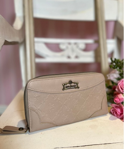 【アイテム説明】 オリジナル柄の型押しデザインを施した長財布です。 バラ・リボンの華やかなディテールがポイント。 幅が広く、カードポケットが多いので収納力・機能性も◎ 同じ柄シリーズの小物とお揃いで持つのもおすすめです。