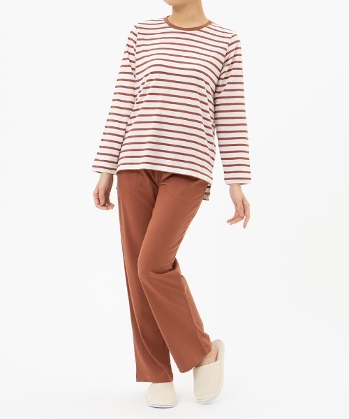 COMME CI COMME CA/コムシコムサ シンプルなボーダー柄がおしゃれな快適ルームウェア♪ -----デザイン&素材ポイント----- シンプルなボーダー柄のトップスと無地のボトムスを組み合わせたルームウェアです。素材は風合いの良い綿混の天竺素材を使用しています。 伸縮性に優れた薄手のニット素材なので、春から秋口まで、比較的長い期間着用いただける素材です。 また、襟ネームはシールを使用しており、剥がして着用いただけるので寝るときも気になりません。ご使用の前に剥がしてお使い下さい。 [商品名]:長袖長パンツ [素材]:天竺 [商品仕様]:パンツ両脇ポケット付/ウエストゴム取替口あり/ブランド・サイズマークはシールのため、剥がしてご使用下さい #パジャマ #ルームウェア #ボーダー柄