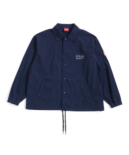 タフなコーデュラナイロンにスパンデックスを加え、ストレッチ性のあるアクティブな素材を用いたコーチジャケット。形はベーシックながら、バックプリントは大胆にリフレクタープリントのブランドロゴを採用。自転車乗りにも最適なアウター。・フロントはスナップボタン仕様・左袖にブランドタグを配置・調整可能なドローコード付き