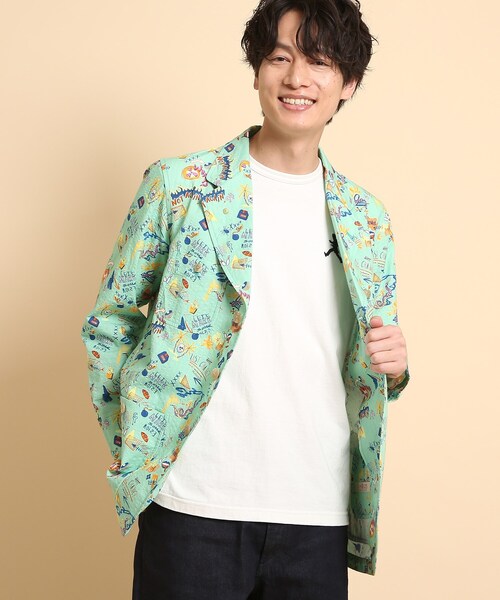 【デザインポイント】 兎にも角にも目を惹き、思わず笑顔になってしまうような POPなハンドドローイングイラスト生地が特徴のカジュアルジャケット。 柄の雰囲気に合わせてリラックスしたシルエットと、4パッチポケットデザイン、 裏無し一重仕様で肩肘張らないカジュアル仕立てにしています。 特に柄をしっかり見せられるように、通常入る背中の縦切替を無くした特別な設計にもしています。 また、フロントボタンは一番上まで留められ、留め/開けの具合や、衿を立てたり寝かしたりと コーディネートの仕方や気温によってアレンジをつけられるようになっています。 同素材でシャツ(205-84019)、ワイドショーツ(205-74001)もご用意。 セットアップでの着用も可能な展開となっております。 南の国やリゾート地などに遠出がなかなか出来ないこのご時世。 洋服だけでも気分を上げてみてはいかがでしょうか。 ※ポケット数:前×4、内側×1 【素材・特性】ブランド初の取り扱いとなるポルトガルに本社を置く『La estampa(ラ エスタンパ)』社の素材を採用。 2002年以来経験豊富なイラストレーター、デザイナー、ブランディングの専門家により、 すべてのクライアントに刺激を与えることを常に目指したクリエイティブチームがいるファブリックメーカーです。 今回はブロードのような平滑な素材ではなく、サッカー素材に載せてもらい作成。 適度なハリ感と、サッカー特有の凹凸もあり春夏にピッタリな素材となっています。 ※こちらの商品はやや透け感があります。 こちらの商品は主に春に着用いただける商品です。 モデル情報:身長182cm B91 W80 H96 着用サイズ:03(L) 店舗へのお問い合わせ商品番号:205-44001 ●製品寸法: 01(S):着丈73cm B106cm 裄丈80cm 02(M):着丈75cm B110cm 裄丈82cm 03(L):着丈77cm B114cm 裄丈84cm 04(LL):着丈79cm B118cm 裄丈86cm 備考:重量:03(L)約310g