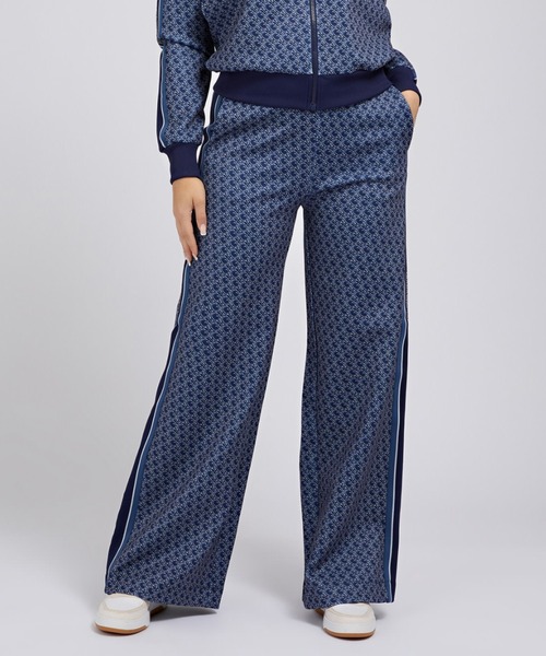 総柄パターンでモダンスポーティに仕上げたワイドパンツ。サイドの配色ラインもエッジのきいたアクセントに。レッグラインを拾わないワイドシルエットでゆとりのある穿き心地です。安心感のあるウエストゴム仕様。