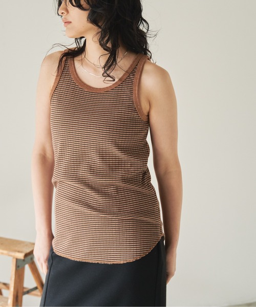 【2022年春夏新作】 何にでも合わせられる万能ベーシックタンクトップ 様々なインナーに使い勝手のよいタックトップ。 薄すぎない生地なので、ミドラーとして、1枚着でも着用できます。 ご自宅でのリラックスシーンにもぴったりです。 ●シルエット・ディティール ・ネックはあきすぎず、詰まりすぎないベストなネックラインに。 ・長めの丈感は、座った時に背中が見えにくく、安心感があって◎ ・アクティブに動くときのインナーとしても◎ ・ネック部分とアームホール部分は、同じランダムリブの生地でくるみ、3本針のステッチを施しています。 ・さりげないステッチがデザインとなり、おしゃれに見えるポイントです。 ・何枚あっても困ることなく、毎日必須アイテムのタンクトップは、着心地の良いアイテムでローテーションしたいアイテムです。 ・カラーは定番のオフホワイト、重くなりすぎないチャコール、差し色にも使えるテラコッタ 1枚でもポイントになるボーダーデザインのブラウン、ブルー、ライムの6色展開です。 ●生地感 ・柔らかなランダムリブを使用しており、肌に密着しすぎない柔らかく伸びのある生地で、着心地も抜群です。 ・ロングシーズン着られる快適な素材です。 -------------------- 生地の厚さ:普通 透け感:オフのみややあり 裏地:なし 伸縮性:あり 光沢感:なし -------------------- ●コーディネート カーディガンやシャツなどの羽織アイテムのインナーとして◎ デニムパンツや、サテンのスカートなど、 無地アイテム、柄アイテムどんな物にも相性抜群の万能タンクトップです。 もちろん真夏は一枚でも着用いただけます。 ざっくりと胸元の開いたワンピースのインナーにしてもおしゃれ。 【ANGIE VINTAGE ZOZOTOWN お買い物ガイド】 【商品のお気に入り登録】 再入荷通知や、ラスト1点の通知、セール通知を受け取ることができます! 【ブランドのお気に入り登録】 新商品や再入荷、クーポンやタイムセールのお知らせ等、お得な情報を受け取ることができます! 【最短で翌日お届け】 商品をカートに入れた後、注文内容の確認ページで「即日配送」を選択していただければ、最短でご注文した翌日にお届け致します。 ※ご注文いただいた予約商品のお届け時期は、注文履歴ページよりご確認いただけます。 ※他のキャンペーンにより、期間中に価格が変動する場合があります。 ※セールは予告なく終了させていただく場合もあります。 ※モニター環境により、画像の色味と実物の色味が多少異なる場合がございます。